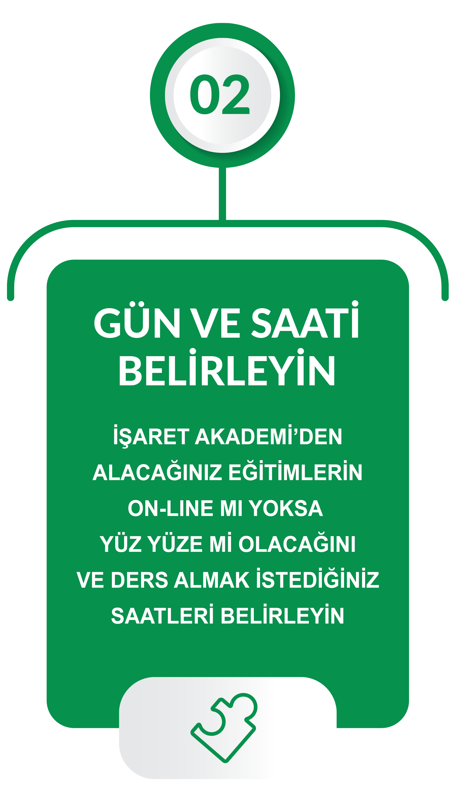 İşaret Akademi olarak Öğrencilerimize 1.Seviye 120 saat MEB onaylı Türk işaret dili eğitimi almalarını sağlamak ve 2. Seviye eğitimler için en az önlisans mezunlarının katıldığı, işaret dilini akıcı bir şekilde kullanabilen, tercümanlık-çevirmenlik ve eğiticilik yapabilen bireylerin yetiştirilmesi amacıyla işaret akademi tarafından örgün ve canlı (on line) eğitim olarak hazırlanan 200 saat kişisel gelişim ve eğitim alanı kurs parogramı vermekteyiz.